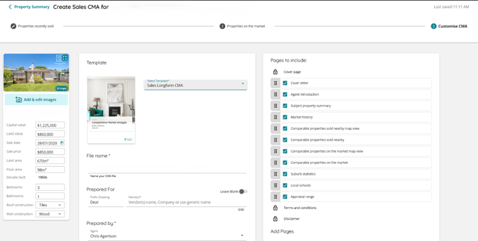 When you land on the customise CMA page now, the first section you are greeted with is the template selection.
