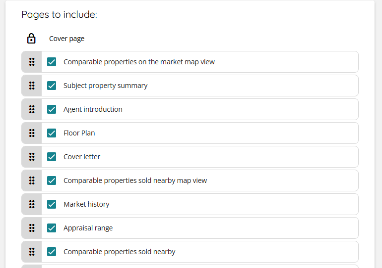 If the target property has a floor plan: users can select, deselect, and reorder the section.